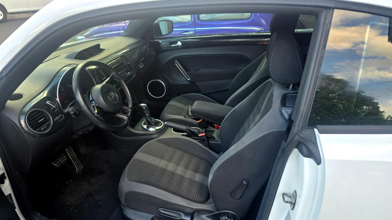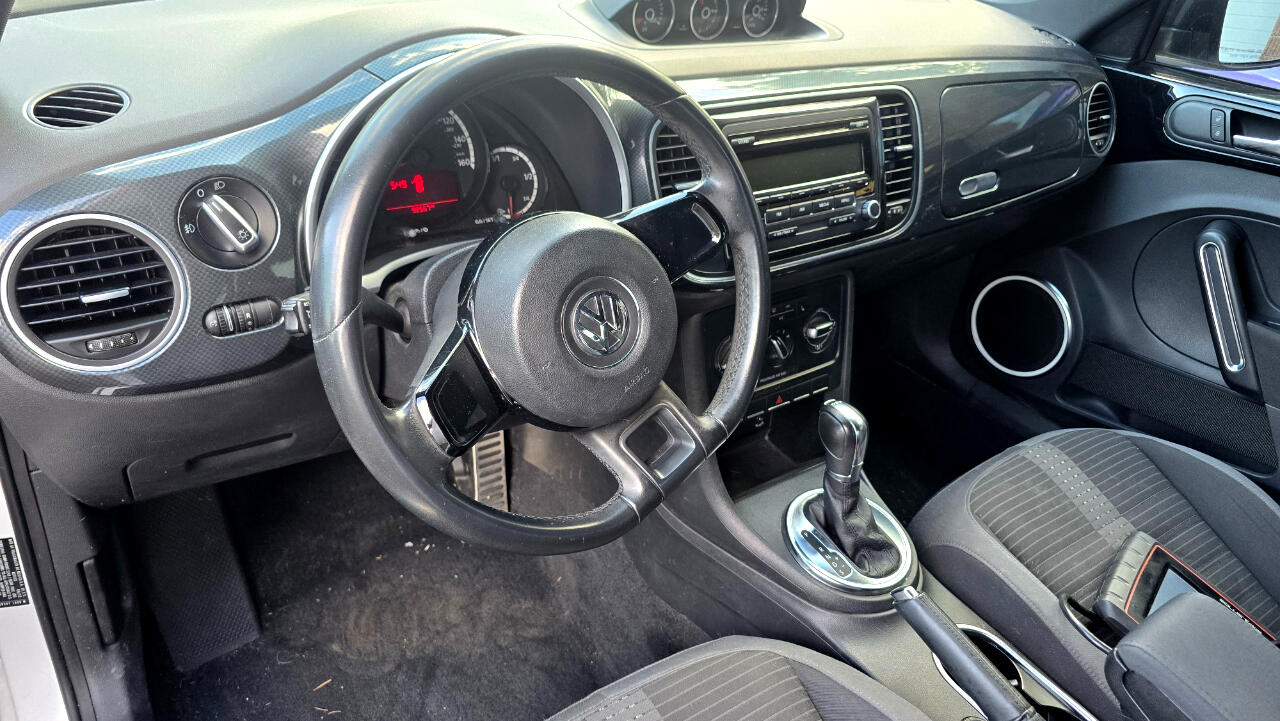 Cute little VW Beetle, one of our favorites. A cool looking new style Beetle that is well equipped with all of the power options Including, Power Windows, Power Locks, Tilt Wheel, Cruise Control, and traction control with front wheel drive. Big ALLOY WHEELS, turbo powered with AUTOMATIC TRANSMISSION and a fun driver. Nice white exterior with rear spoiler, side effects and beautiful cloth embroidered interior. A fun driver for sure, just through the shop, ready for fun We do take trades and financing always available