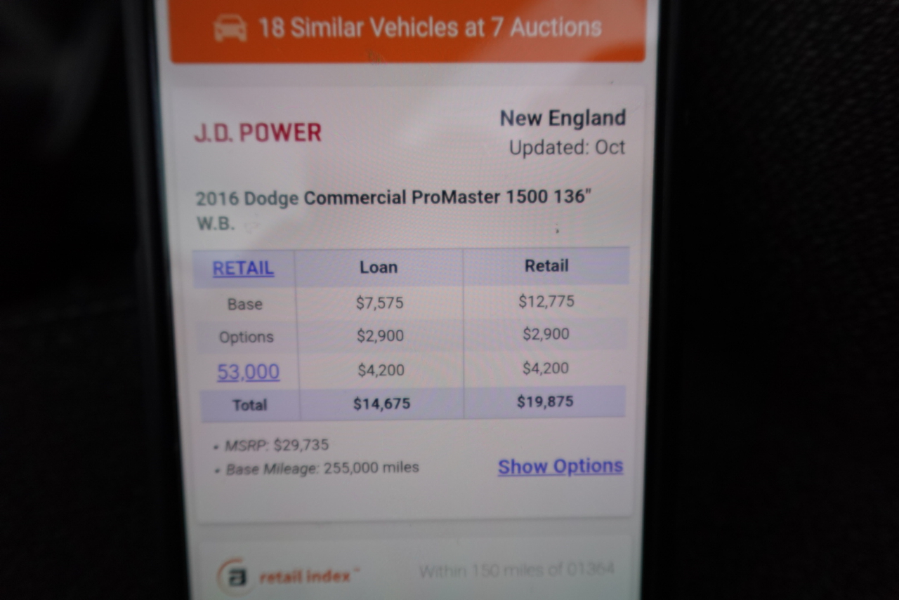 LOW MILEAGE 2016 Ram Promaster 1500 CARGO VAN ready to work. This van is in great condition, equipped with Power Windows, Power Locks, Tilt Wheel, Cruise Control and front wheel drive with traction control. A Steel passenger divider and sturdy running boards to protect the van sides. Rear Barn doors and right side sliding cargo door make for easy loading. This van would be great for the Plumber, Carpenter, Electrician or tradesman wanting to store tools in a dry safe place. Look at the last picture, this shows today's current book value of nearly $20,000.00. So our price is well below its value.