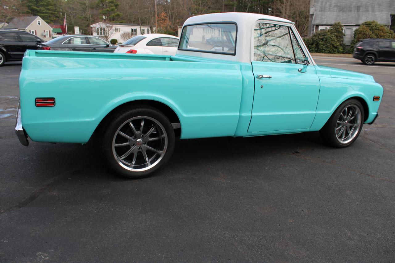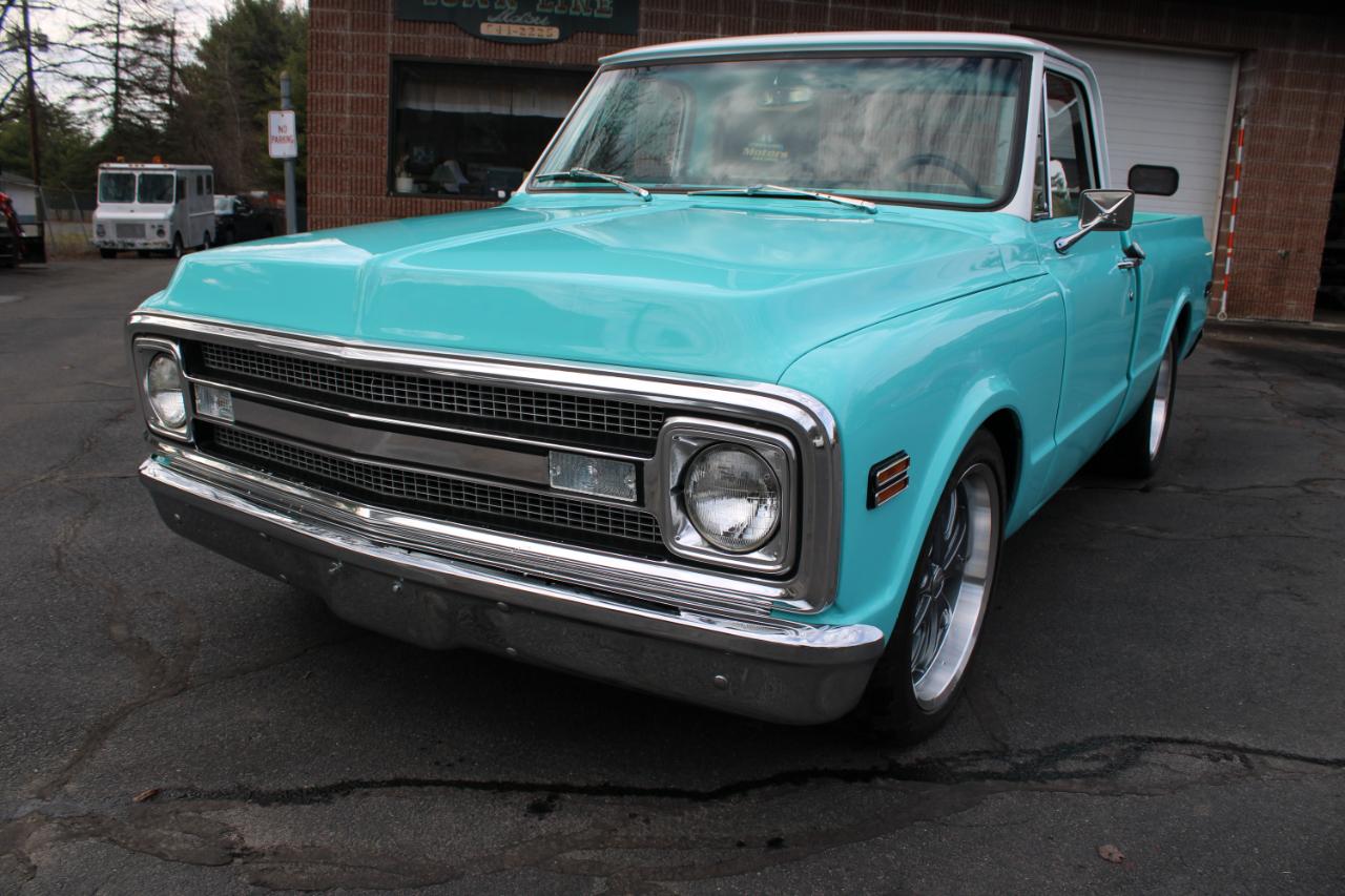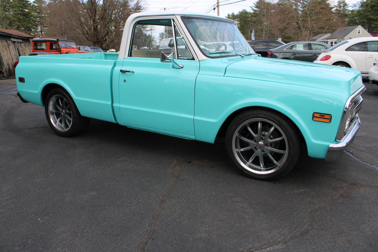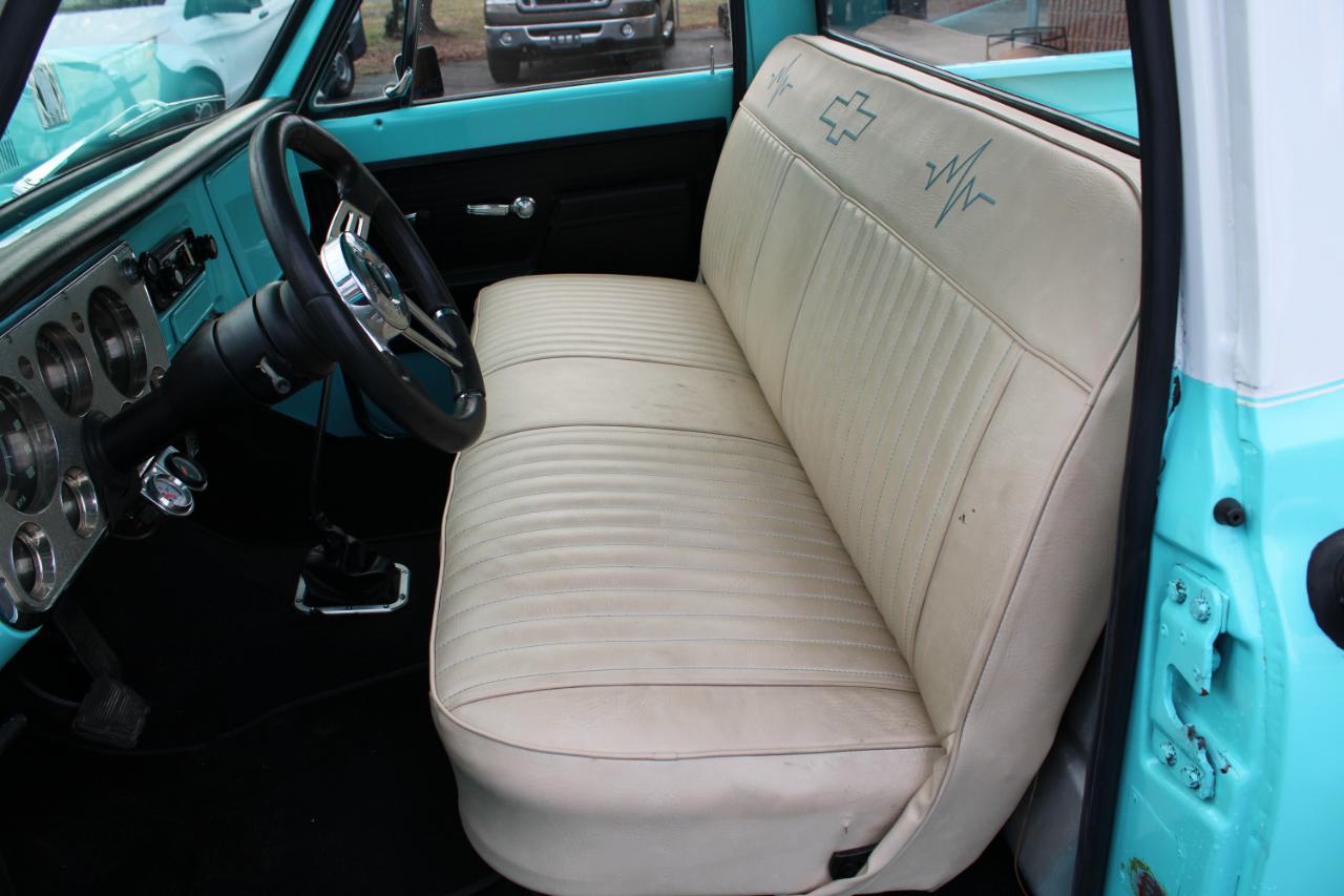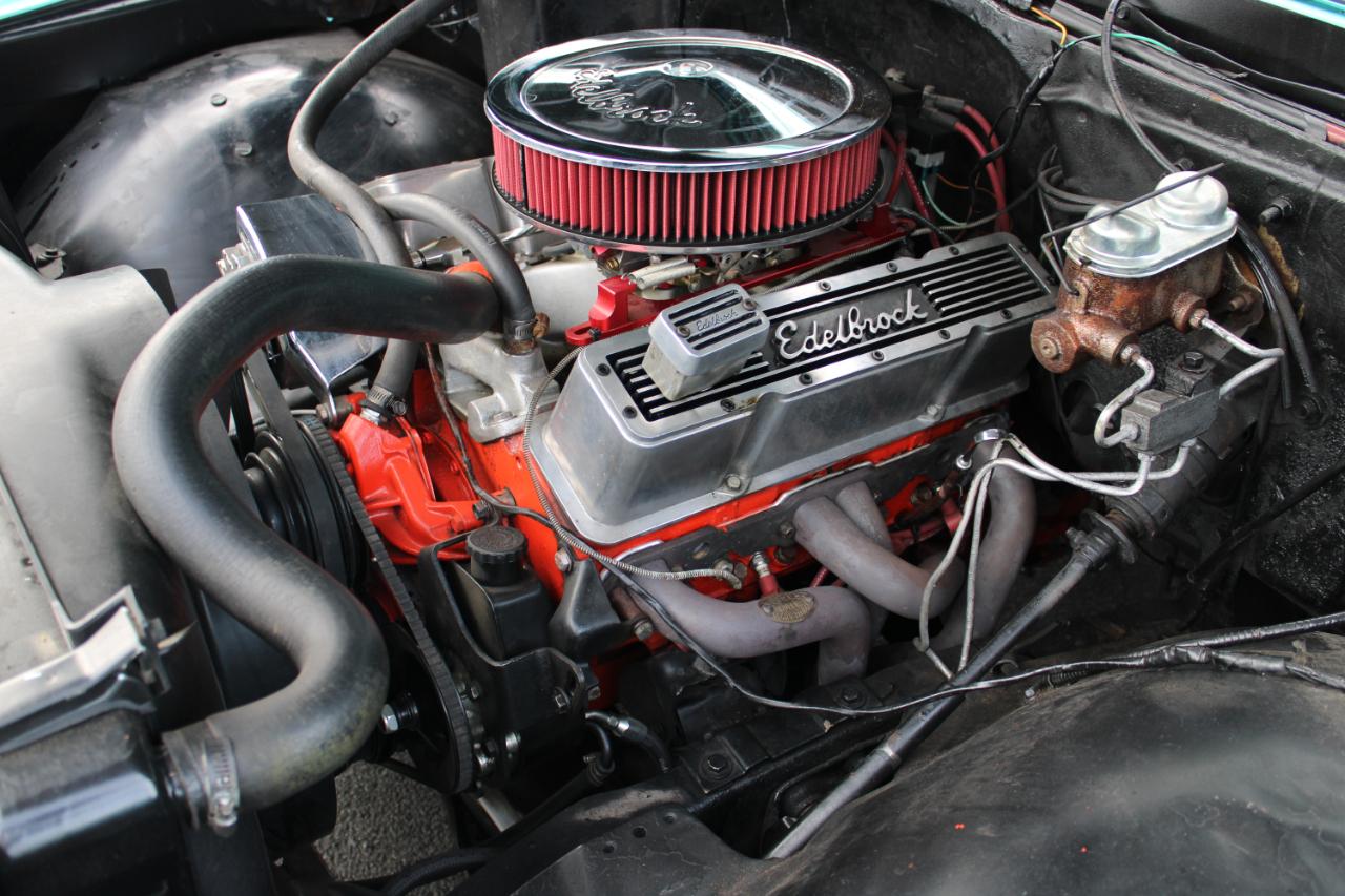 A 350 small block V8 with several engine mods, not sure of specific cam size etc as I did not build this truck, its a lumpy cam. And its a bear of a motor. Chrome and aluminum goodies throughout. Automatic transmission and a lowered stance on this REAR WHEEL DRIVE truck. Previously restored, no rust, no rot, no dents , paint is perfect and shines nicely. 20" wheels with good rubber, all new steering components and front disc brakes conversion. Interior is nice and this one is show worthy. New dual Exhaust just installed to quiet down what was to loud for us. Come check it out.