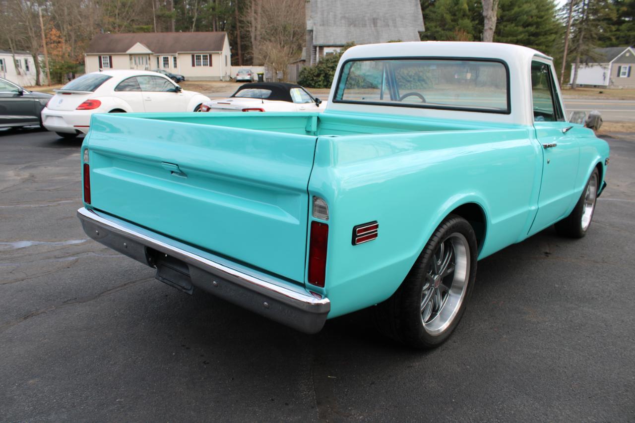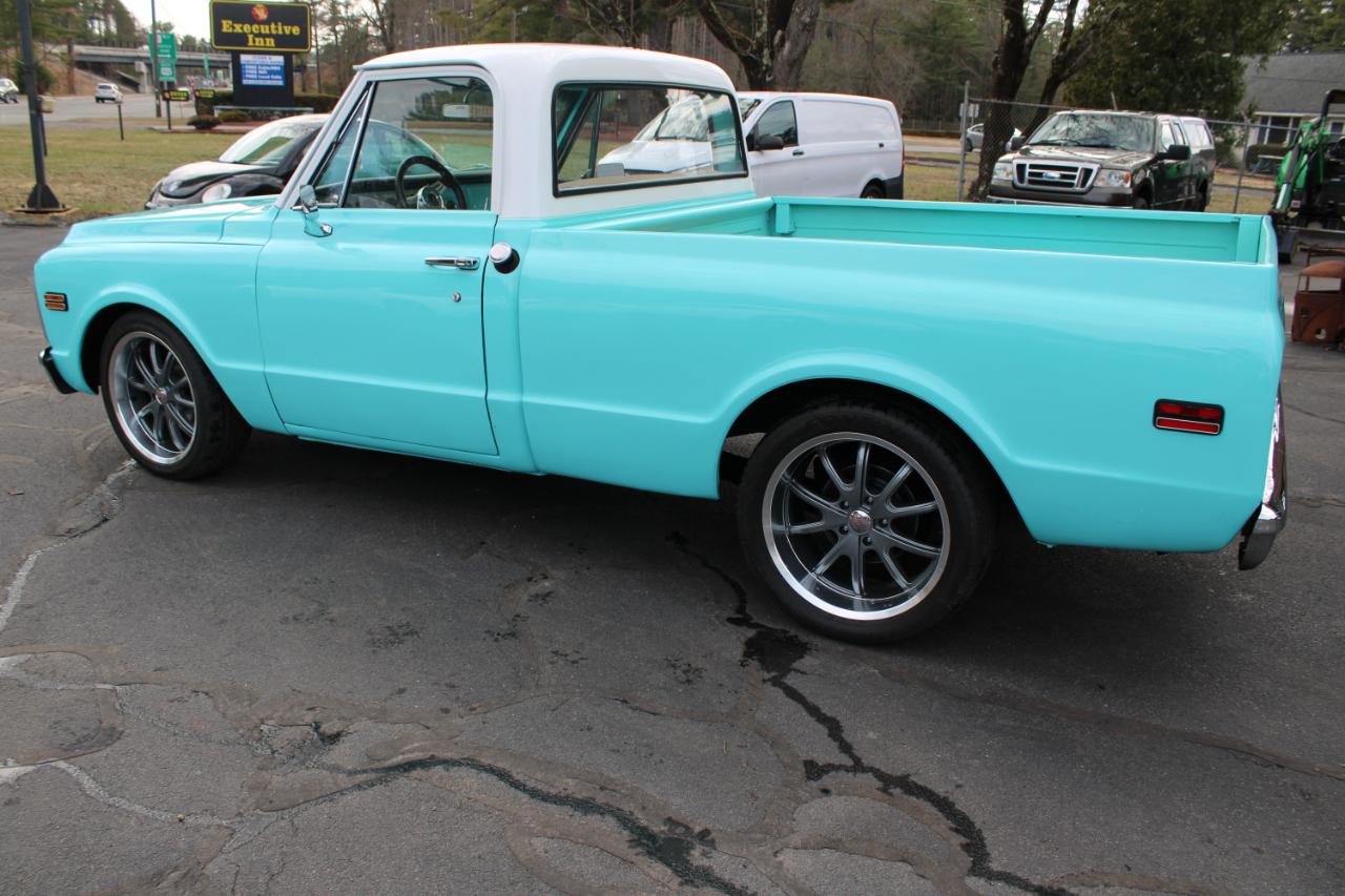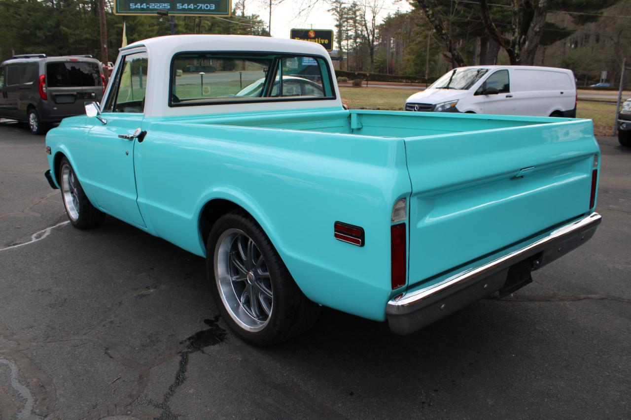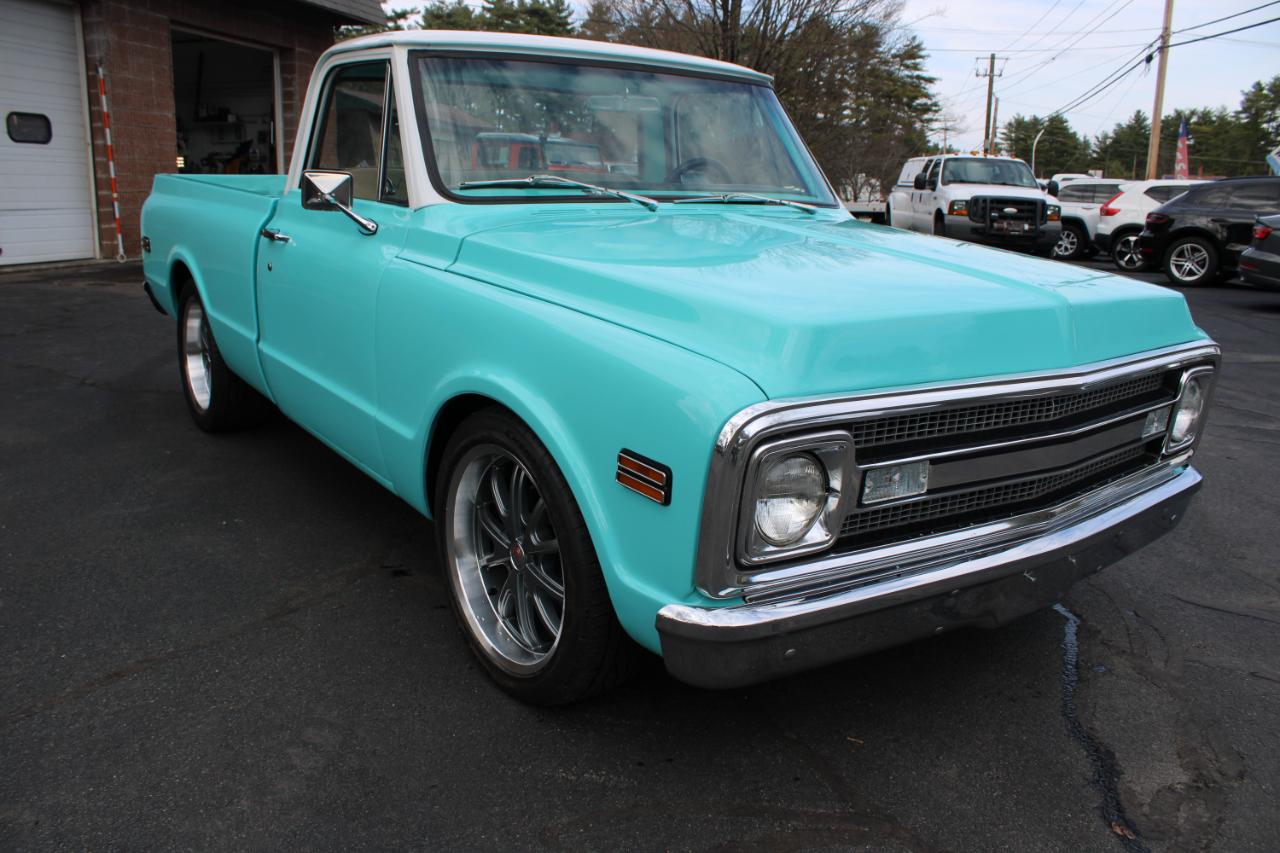 A 350 small block V8 with several engine mods, not sure of specific cam size etc as I did not build this truck, its a lumpy cam. And its a bear of a motor. Chrome and aluminum goodies throughout. Automatic transmission and a lowered stance on this REAR WHEEL DRIVE truck. Previously restored, no rust, no rot, no dents , paint is perfect and shines nicely. 20" wheels with good rubber, all new steering components and front disc brakes conversion. Interior is nice and this one is show worthy. New dual Exhaust just installed to quiet down what was to loud for us. Come check it out.